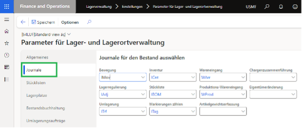Und bitte nicht vergessen, um Registerkarte Journale in Parameter für Lager- und Lagerortverwaltung (Lagerverwaltung Einstellungen > Parameter für Lager- und Lagerortverwaltung) zu prüfen.