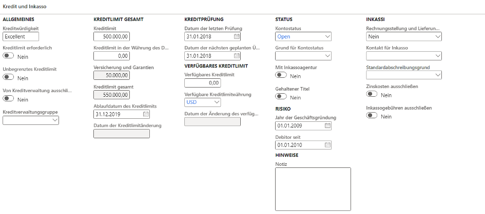 Hier finden Sie weitere Informationen über das gesamte Modul Kredit und Inkasso von Microsoft.