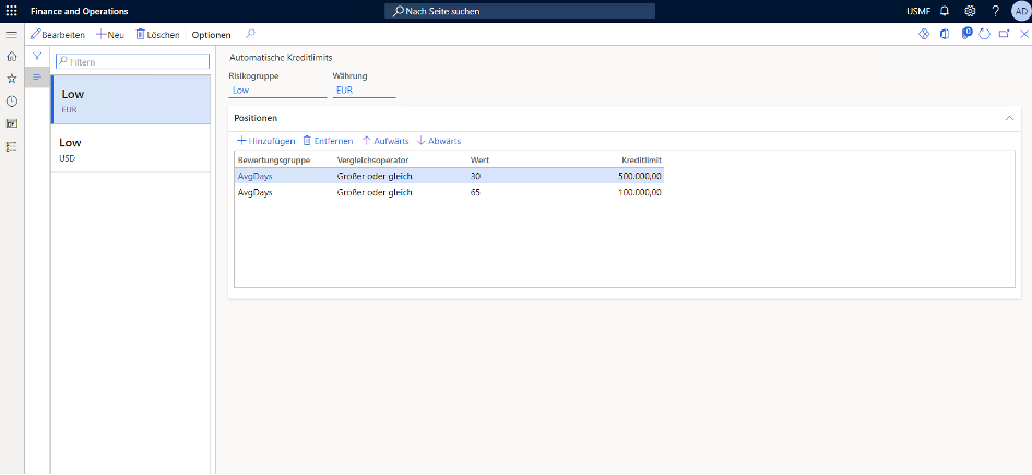 - Langfristige oder temporäre Kreditlimits manuell anpassen