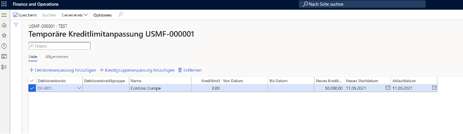 Durch Klicken auf Generieren im Aktionsbereich, wird die Kreditlimitanpassung automatisch generiert.