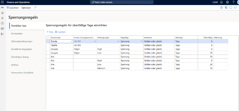 Neben den Kreditlimits als Richtwerte, haben Sie auch die Möglichkeit Sperrungsregeln zu definieren.