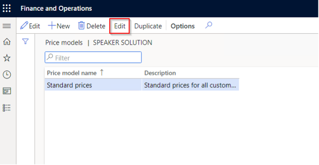 Edit in the action area takes you to the edit page for the selected pricing model.
