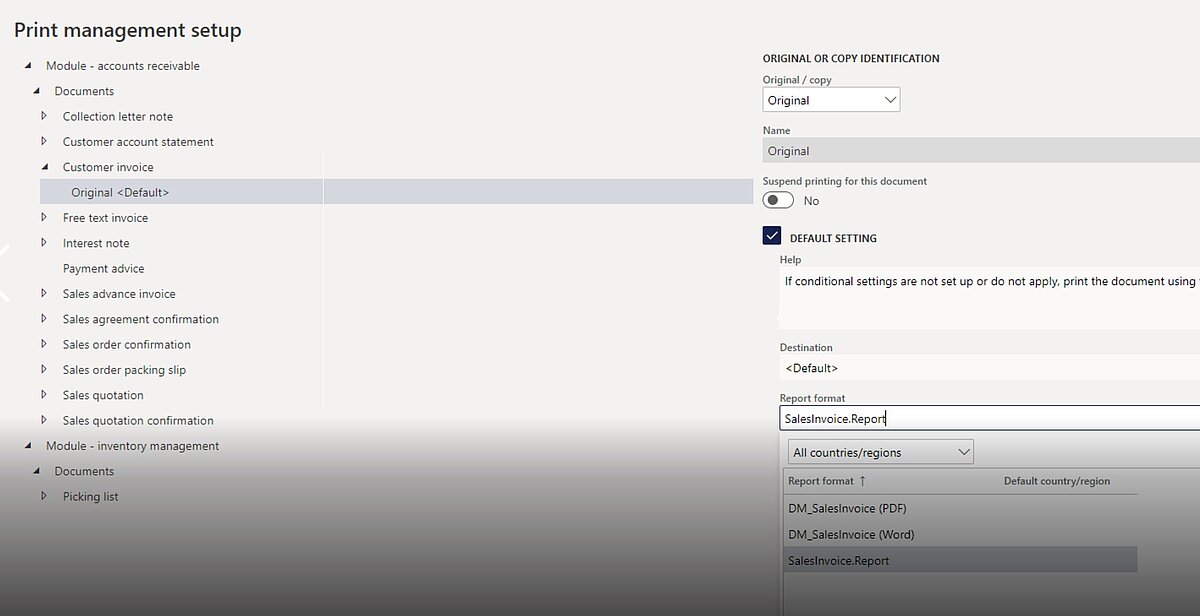 The Business Document Type is a tag specifically designed for Business Document Management and is mandatory for configurations. If you omit this Business Document Type tag, your configuration will not be compatible with Business Document Management. The Business Document Type tag specifies the output document for which this configuration will be applied. Once this tag is added, you should be able to associate your document with print management.