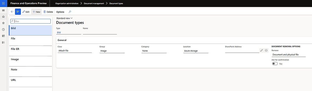Before you can set up ER, you must set up the required document types: Organization administration > Document management > Document types: