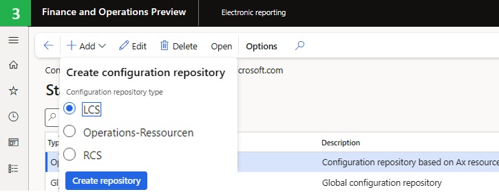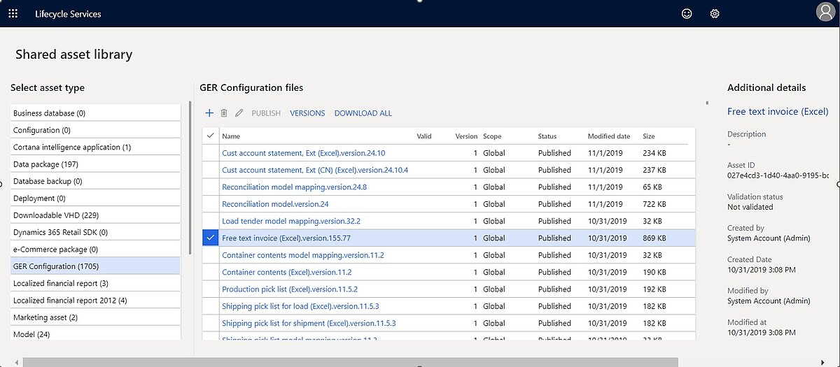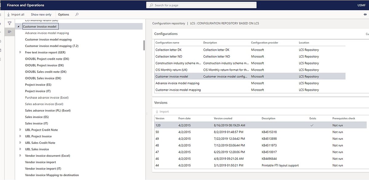 Alternatively, you can import the officially published ER format configurations from Microsoft Dynamics Lifecycle Services: