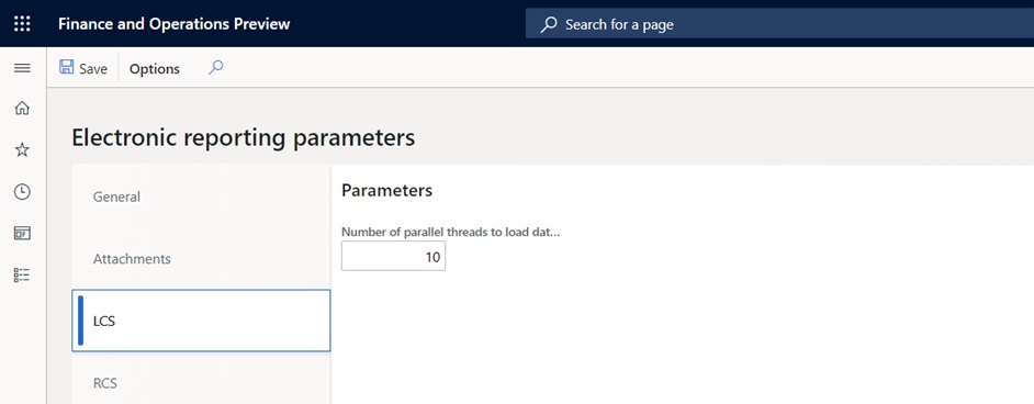 3. On the LCS tab of the Electronic reporting parameters page, the number of parallel threads to be used to load an ER configuration from repositories in Microsoft Dynamics Lifecycle Services is defined. This ensures that the configurations are loaded in the most efficient way.