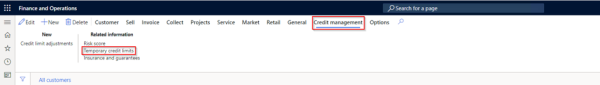 Under “Credit and collections > Credit limit adjustment > Credit limit adjustment”, you can create and adjust long-term and temporary credit limits for customers.