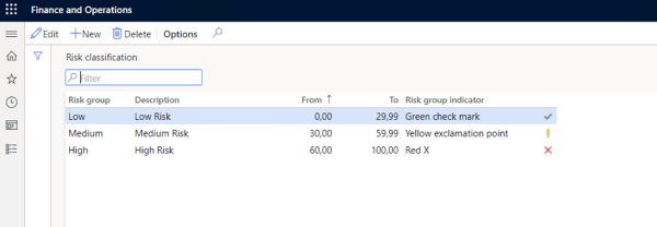 A risk assessment is calculated by comparing customer information with each scoring group. You can enter scoring groups of different types, whose risk value is calculated by the system over periodic tasks.