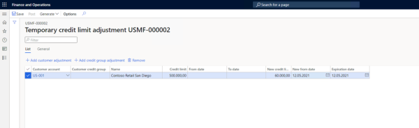 Clicking “Generate” in the action pane automatically generates the credit limit adjustment.