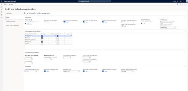 The credit and collection parameters can, among other things, set credit management checkpoints.