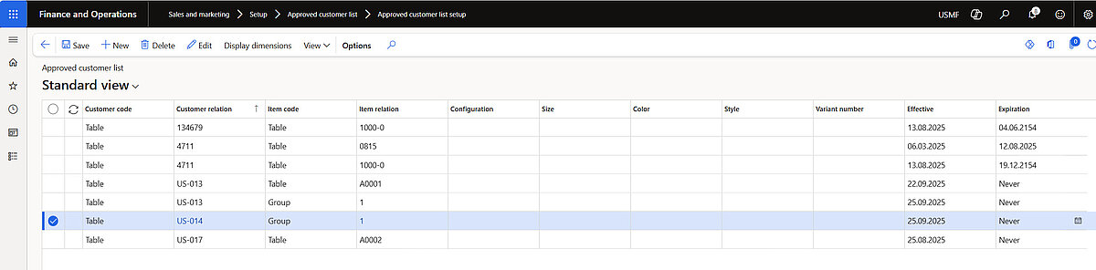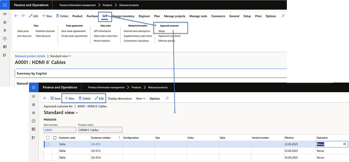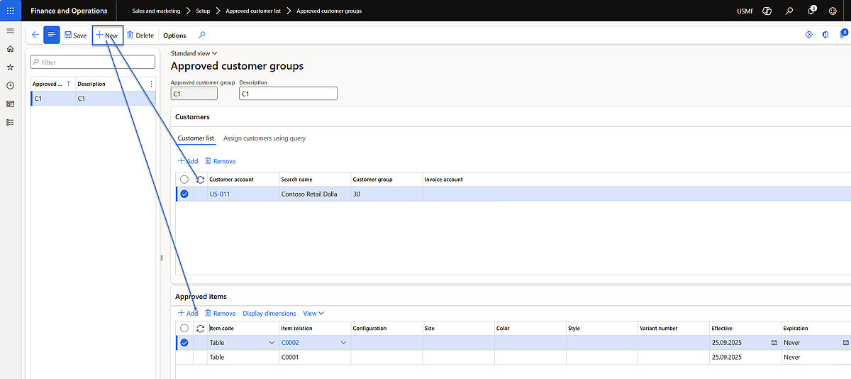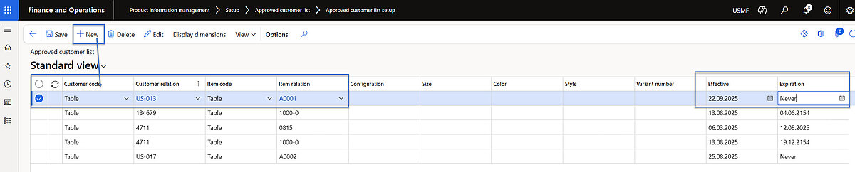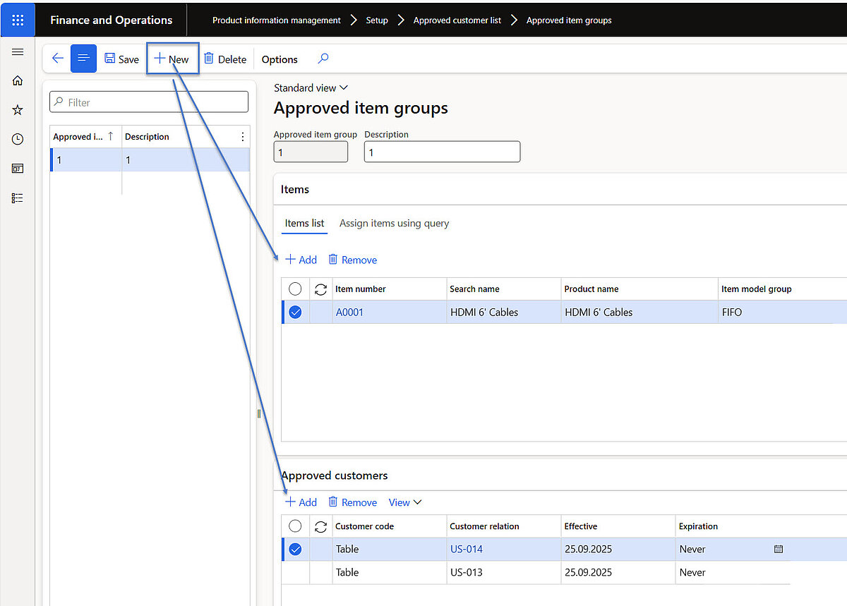 Product information management > Setup > Approved customer list > Approved customer list setup