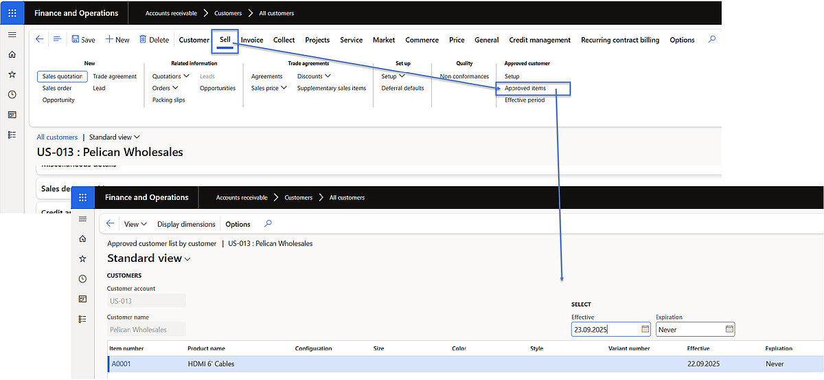Within the customer master data, users have multiple options for viewing which items are approved for a specific customer.
