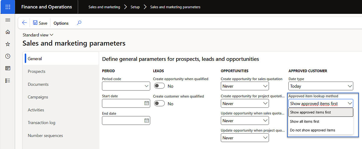 And Sales and marketing > Setup > Approved customer list > Approved customer list setup