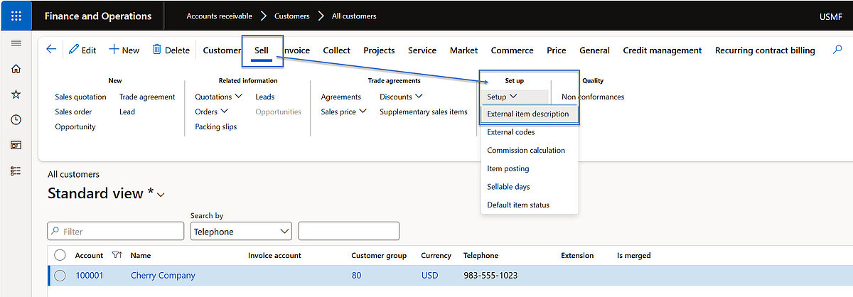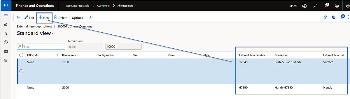 Alternatively, external item identifiers and descriptions can be maintained within the customer master data by specifying the corresponding item.