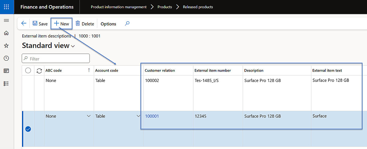 External Item IDs and corresponding descriptions can be entered within the product master data, with the relevant customer account specified to ensure accurate association.