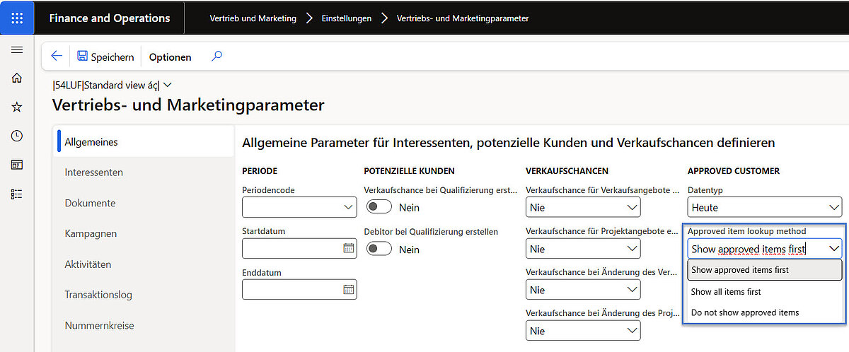 Und Vertrieb und Marketing > Einstellungen > Approved customer list > Approved customer list setup