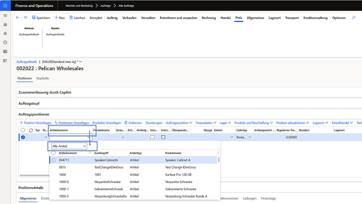 Benutzer haben die Möglichkeit, die Anzeige genehmigter Artikel in der Verkaufsauftragsmaske flexibel zu konfigurieren – beispielsweise, indem diese in der Artikelliste priorisiert oder je nach Einstellung ausgeblendet werden.