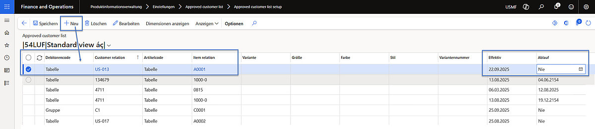 Benutzer können die Liste der zum Kauf bestimmter Artikel berechtigten Kunden direkt im Artikelstammsatz verwalten und aktualisieren, um sicherzustellen, dass die Kundenfreigaben stets korrekt und mit den aktuellen Vertriebsrichtlinien abgestimmt sind.