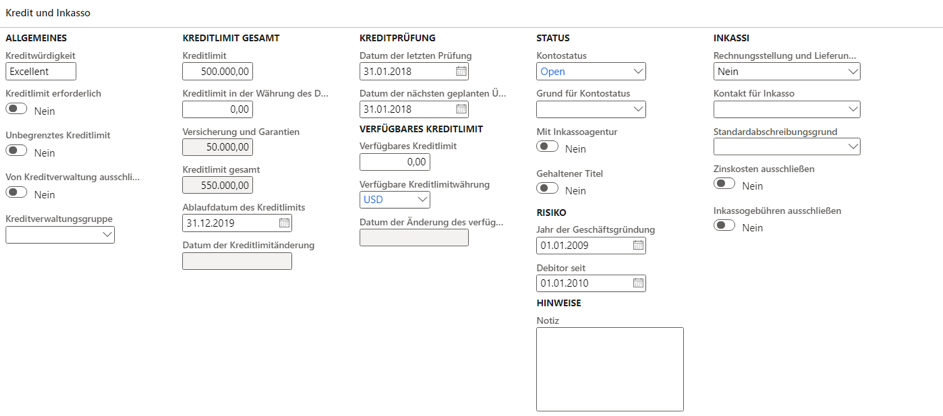 Hier finden Sie weitere Informationen über das gesamte Modul Kredit und Inkasso von Microsoft.