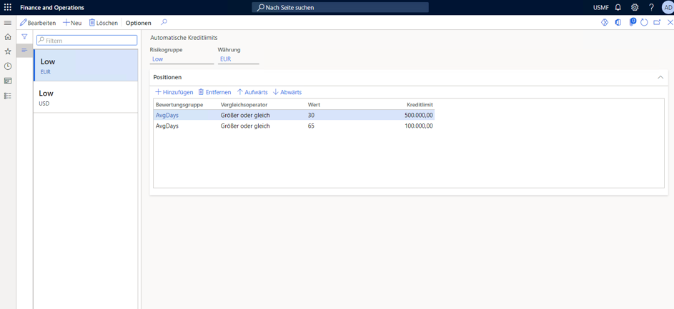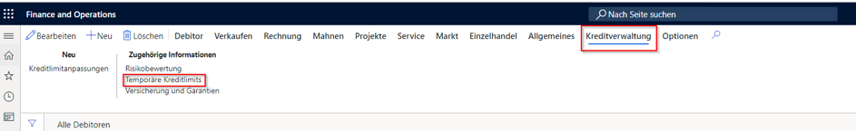 - Langfristige oder temporäre Kreditlimits manuell anpassen
