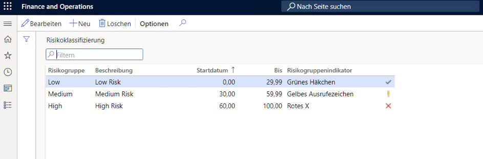 Risikogruppen werden über das Modul „Kredit und Inkasso > Einstellungen > Risiko > Risikoklassifizierung“ angelegt.