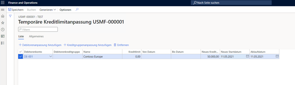 Durch Klicken auf Generieren im Aktionsbereich, wird die Kreditlimitanpassung automatisch generiert.