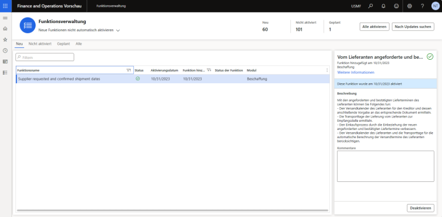 Neues Feature in Dynamics 365 Finance and Supply Chain Management